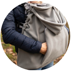 Fleece winter cover for ergonomic carriers and slings.
