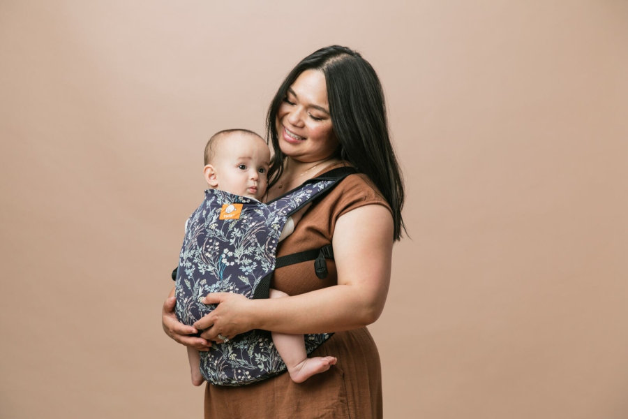 Back carry and front carry options to provide an ergonomic position best for long term, comfortable carrying that promotes healthy hip and spine development for baby.