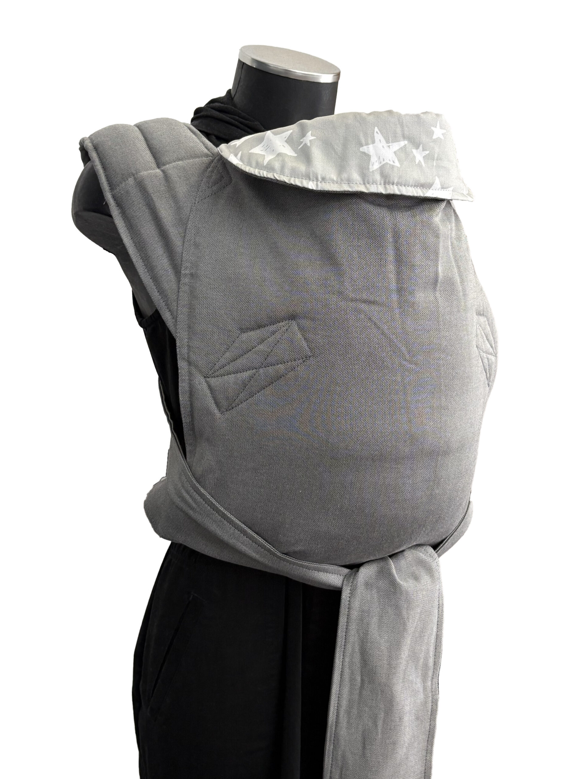 Εσωτερικά, Ράντες: Stone Grey weave soft and cool (γκρι της πέτρας), 100% οργανικό βαμβάκι, υφαντό, αλλά πολύ απαλό και λεπτό. κατασκευάζεται ειδικά για μάρσιπους, αποκλειστικά για τα Αστεράκι Slings.
